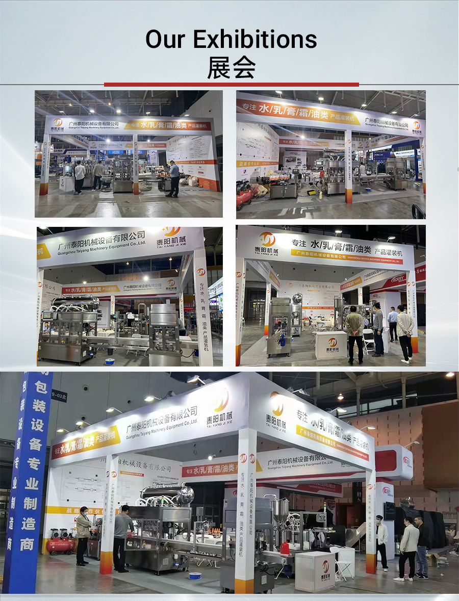 Ang Taiyang Makinarya Equipment Co, Ltd ay matatagpuan sa Baiyun District, Guangzhou City, Lalawigan ng Guangdong. Ang aming kumpanya ay isang umuusbong na teknolohiya ng teknolohiya na dalubhasa sa pananaliksik at pag-unlad, pagmamanupaktura, pagbebenta at komprehensibong serbisyo pagkatapos ng benta ng pagpuno ng mga machine, packaging machine, pag-label ng mga machine at iba pang mga kagamitan sa mekanikal , ay nakatuon sa awtomatikong linya para sa mainit at malamig na pagpuno/capping/sealing/pag-label ng mga cosmetics, pangangalaga sa balat, pampaganda, paghuhugas at pang-araw-araw na kemikal na likido, lotion, ointment, creams, waxes, powder at langis. Dahil ang pagtatatag nito noong 2017, na may maaasahang kalidad, makatuwirang presyo, mga serbisyo ng propesyonal at mabuting reputasyon, ang aming kagamitan ay kumalat sa higit sa 20 mga lalawigan at lungsod sa China at na -export sa ibang bansa.Ang pang -iisang kagamitan ng Makinarya ay binuo batay sa puna mula sa iba't ibang mga customer at naipon na may mga taon ng teknolohiya ng industriya, at partikular na sikat sa mga customer. Kami ang tagapagtatag ng kilalang "pagsubaybay sa pagsubaybay sa industriya". Patuloy kaming nag -upgrade ng kagamitan upang mapagbuti ang kahusayan at katatagan, na nagpapahintulot sa mga customer na mamuhunan sa mababang gastos at makagawa ng mataas na kahusayan, habang nagse -save ng maraming lakas ng tao.
